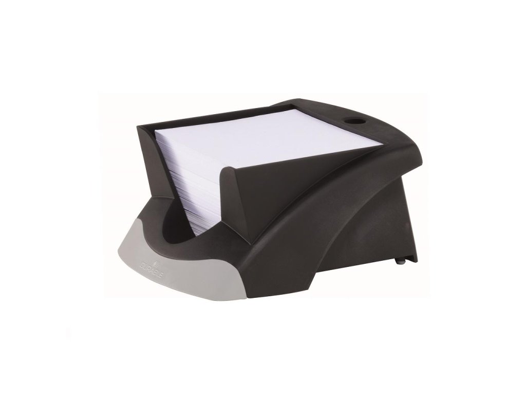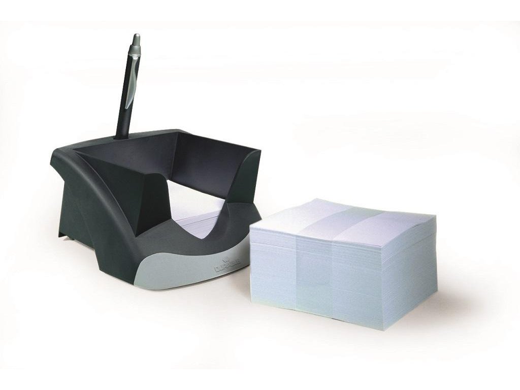 Štýlový stojan na bloky v dizajne produktovej rady DURABLE VEGAS dodávaný s 500 papierikmi bielej farby rozmerov 90×90 mm. Ľahký prístup k papierikom, priestor na pero, protišmyková úprava. Rozmery (š×v×d) 116×70×153 mm.Farba: čierna/sivá
