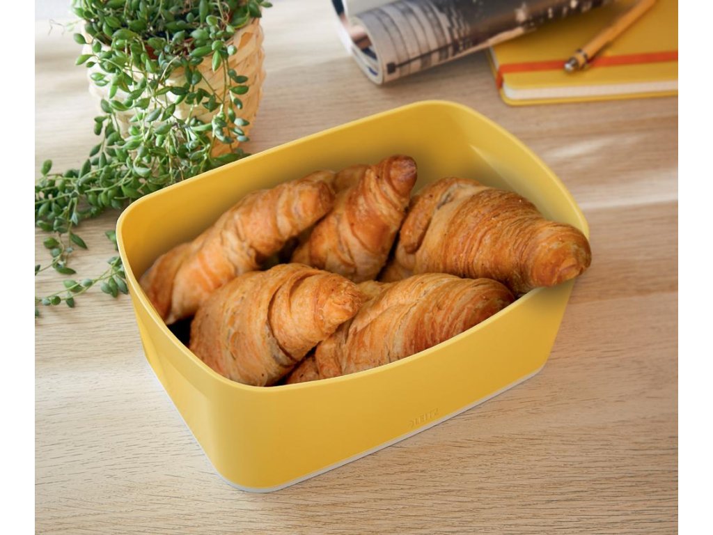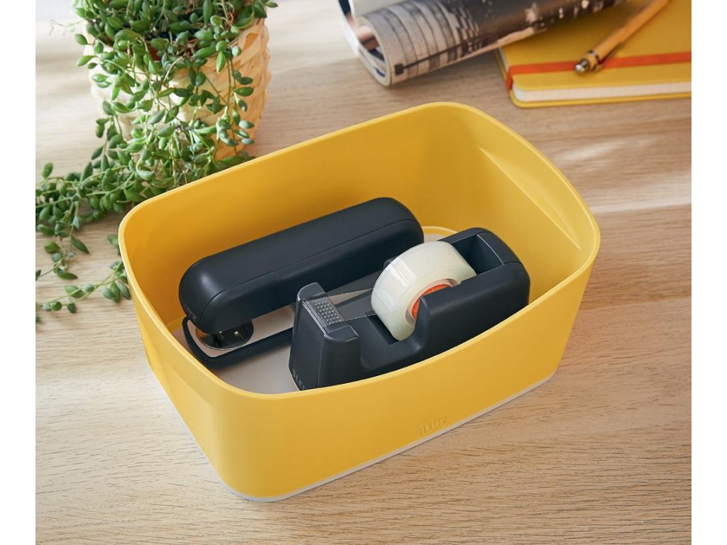 Úložný box je ideálny na uloženie všetkých dôležitých drobností, ako sú napríklad káble, zošívačka, domáce náradie, čistiace prostriedky. MyBox má certifikáciu Food safe, je vhodný na prenos teplých aj studených jedál, na uloženie potravín - čaju, kávy, mlieka, cukru - vo firemnej kuchynke či na recepcii, doma na ovocie a pod. Tento box prvotriednej kvality je perfektným doplnkom vášho domova alebo kancelárie, pomôže s organizáciou dôležitých drobností a uľahčí a spríjemní vám prácu. Materiál plast. Rozmery 246 x 98 x 160 mm. Farba žltá.Dodatočné parametre