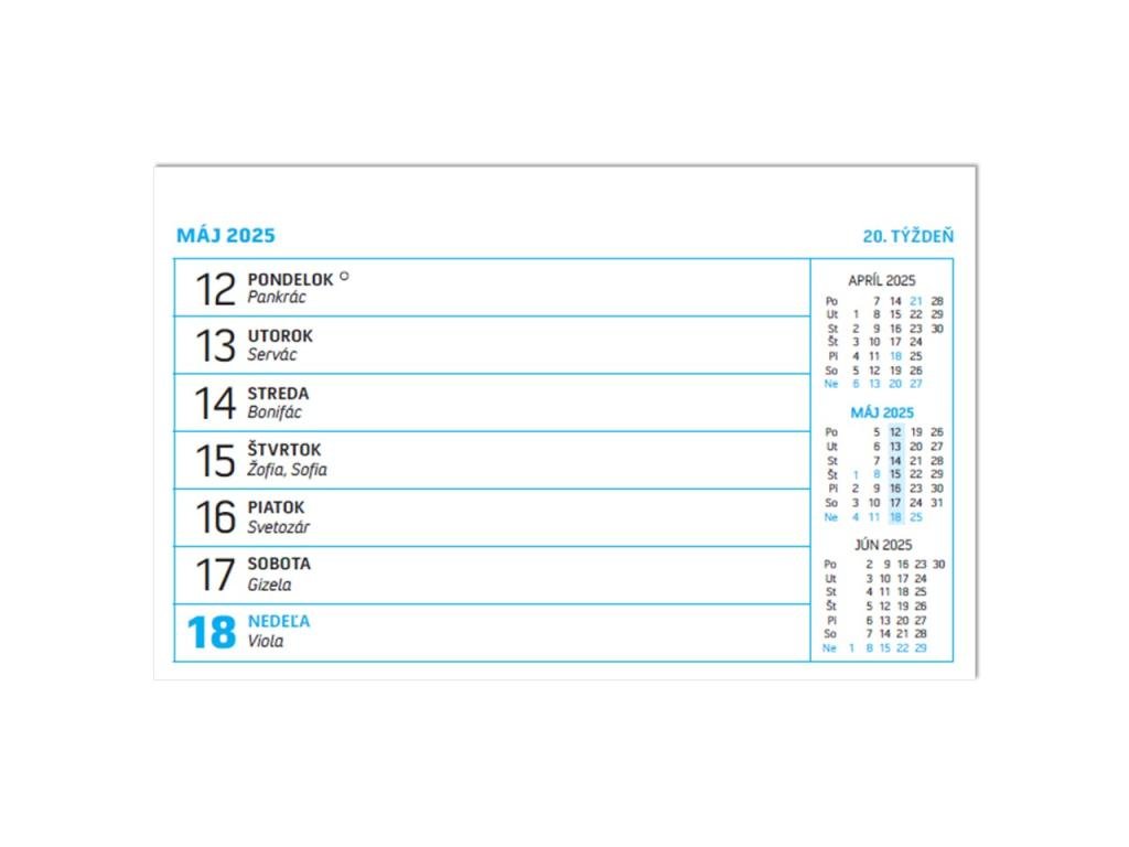 Stolový kalendár riadkový MALÝ 20 × 12,5 cm 2026