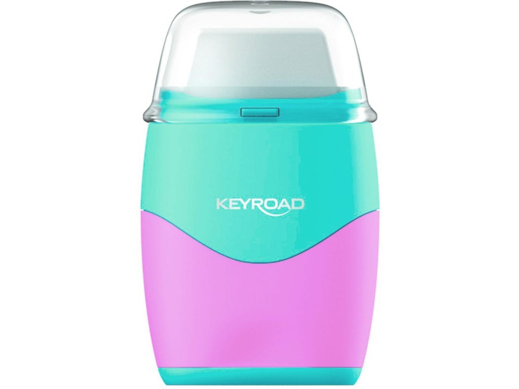 Strúhadlo KEYROAD Pastel color collection! plastové s dvomi otvormi a gumou, blister, mix farieb