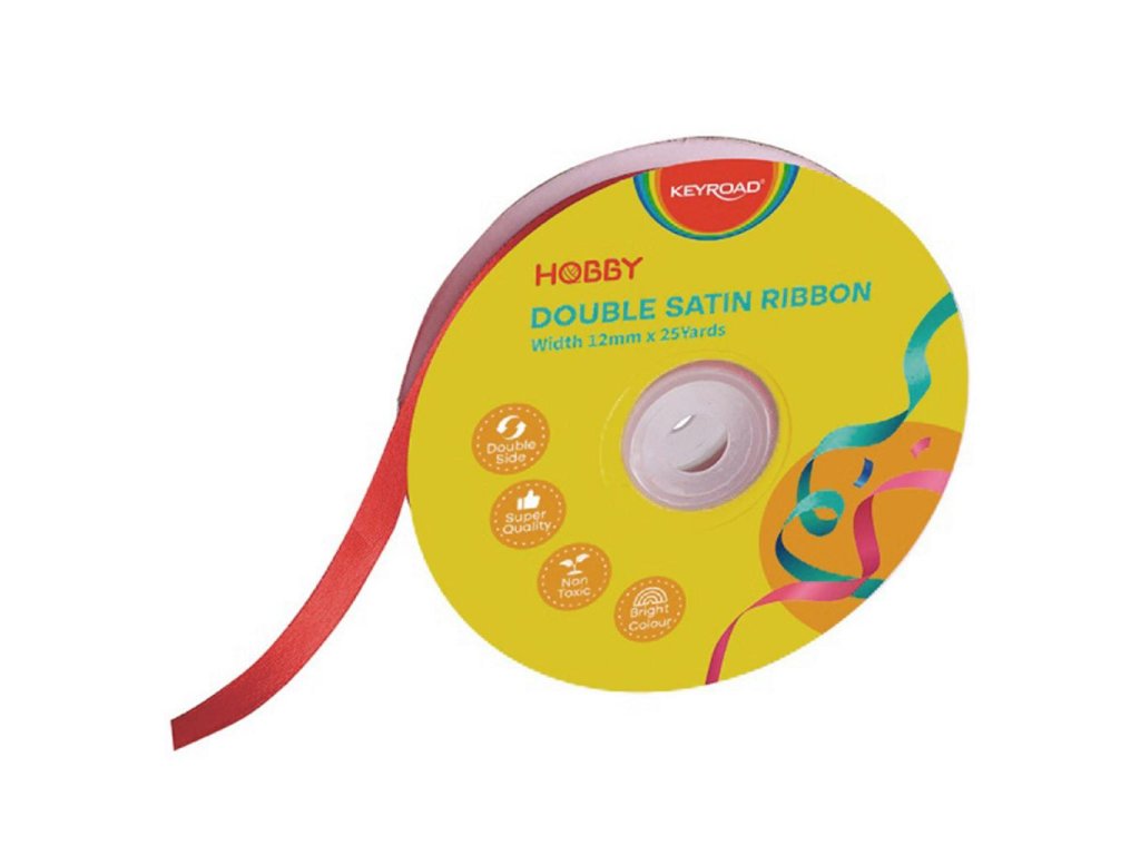 Stuha KEYROAD dvojitá saténová, 12 mm x 22,86 m, na cievke, červená