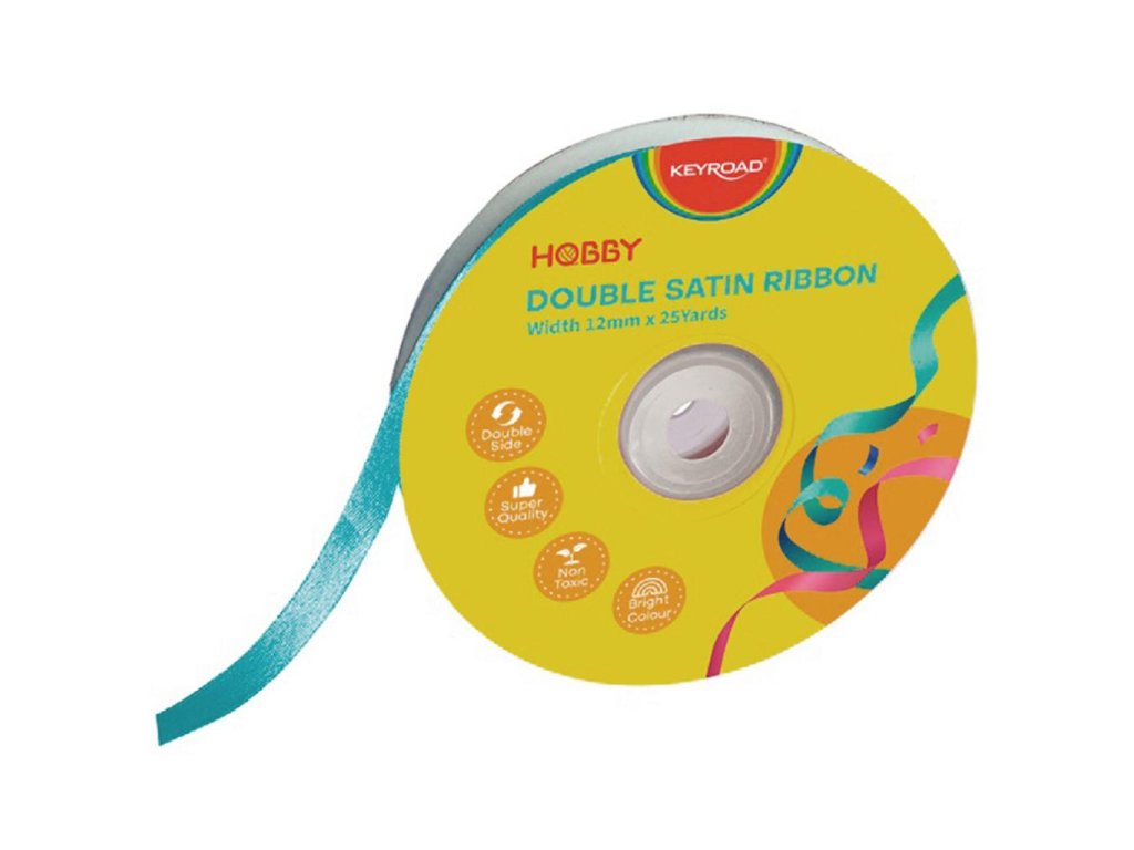 Stuha KEYROAD dvojitá saténová 12 mm x 22,86 m na cievke, modrá