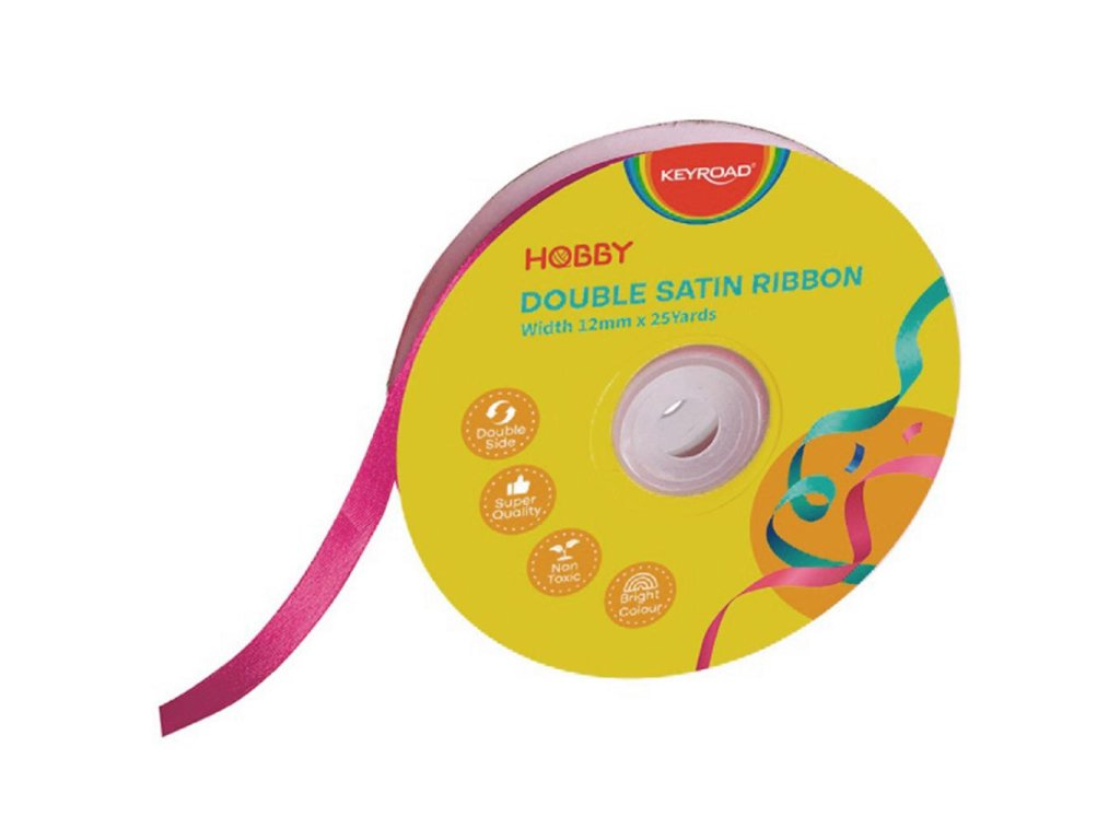 Stuha KEYROAD dvojitá saténová 12 mm x 22,86 m na cievke, ružová