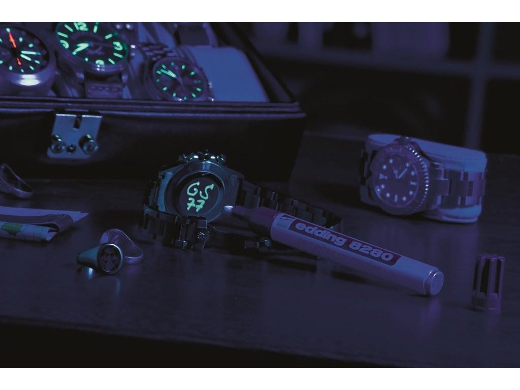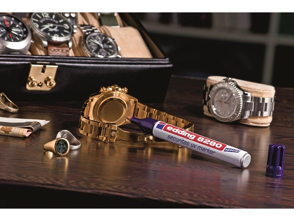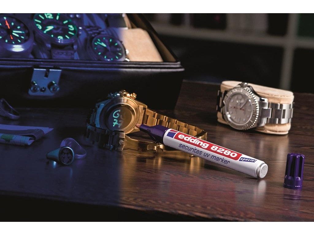 Popisovač so špeciálnym atramentom, viditeľným výhradne pod ultrafialovým svetlom. Okrúhly hrot, šírka stopy 1,5 - 3 mm. Väčšie balenie 10 ks.Šírka stopy: 1,5-3 mm