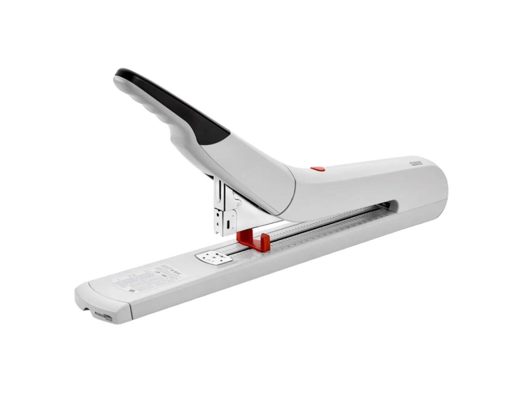 Silná veľkokapacitná zošívačka s kapacitou do 170 listov 80 g papiera. Kovový zásobník s dvojitým vedením spiniek. Kapacita náplne 100 spiniek 23/8 až 23/20SUPER. Hĺbka zošívania 25 cm. Hmotnosť cca 2400 g. Záruka 25 rokov.Farba: ivá