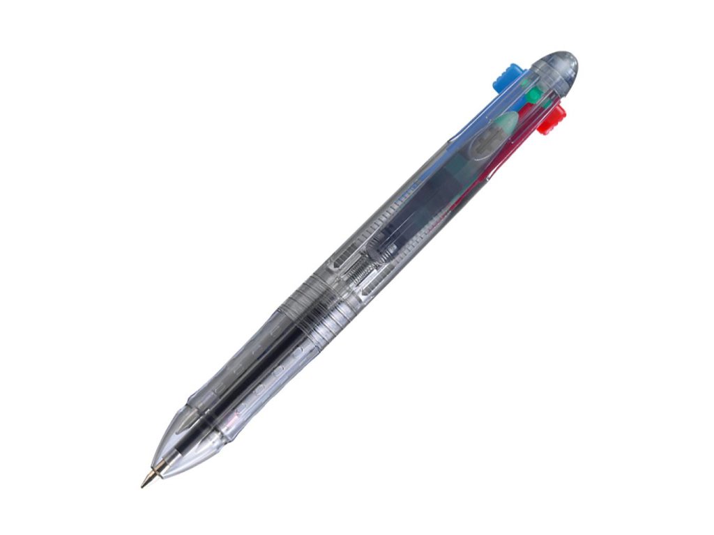 Štvorfarebné guľôčkové pero - medium, plastové telo pera, balenie na blistri.Dodatočné parametre