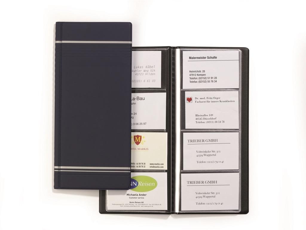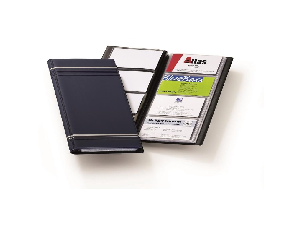 Vizitkár prenosný na 96 vizitiek VISIFIX s prúžkami tmavomodrý
