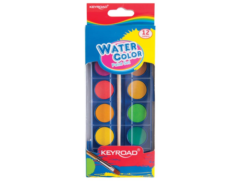 Vodové farby akvarelové so štetcom KEYROAD, 12 farieb
