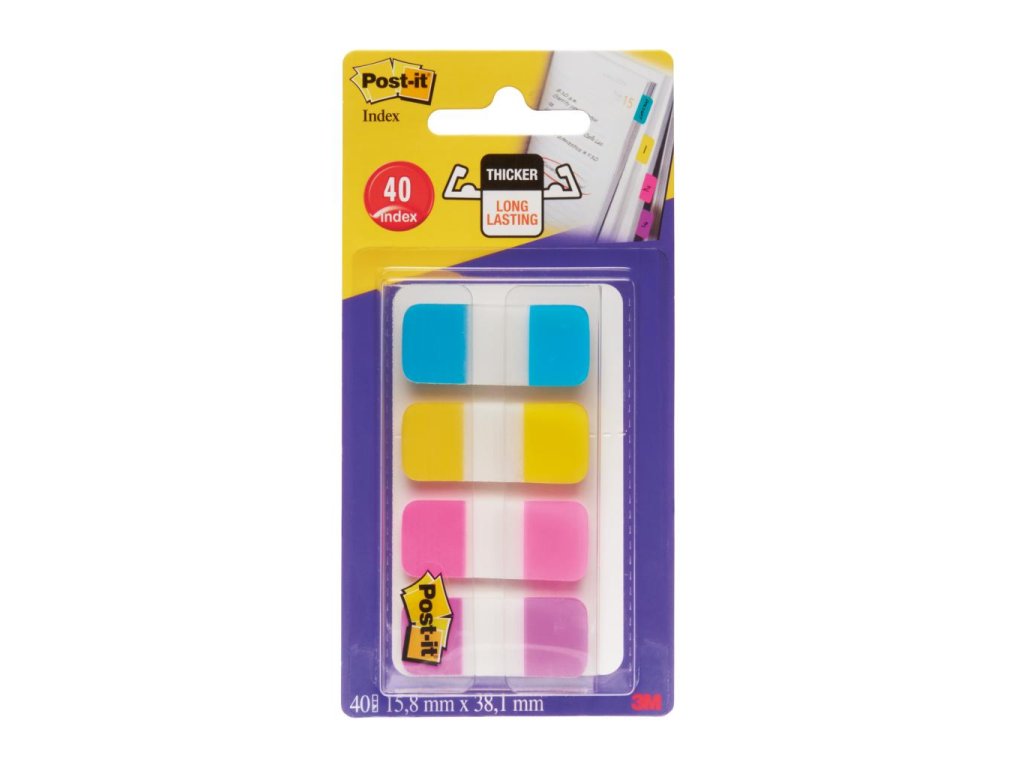 Záložky Post-it® na označovanie dôležitých častí dokumentu. Premiestniteľné, odstrániteľné a popisovateľné perom. Rozmery 15,8 × 38,1 mm. V balení 4 farby po 10 lístkov.- Post-it® záložky pomáhajú vytvoriť poriadok jednoduchým rozdelením plánovačov, kalendárov a zložiek na samostatné časti.