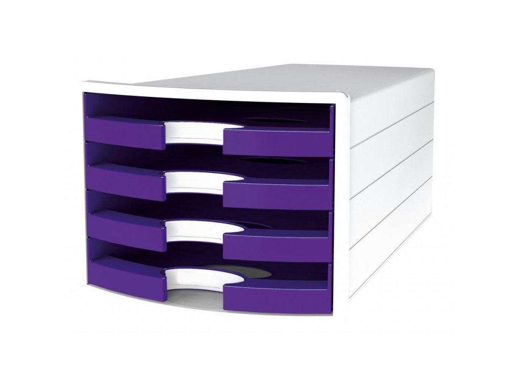 Box so štyrmi otvorenými zásuvkami v tvare počítačového monitora v trendových farbách. Rozmery (š × v × h) 294 × 235 × 368 mm. Farba fialová.Dodatočné parametre