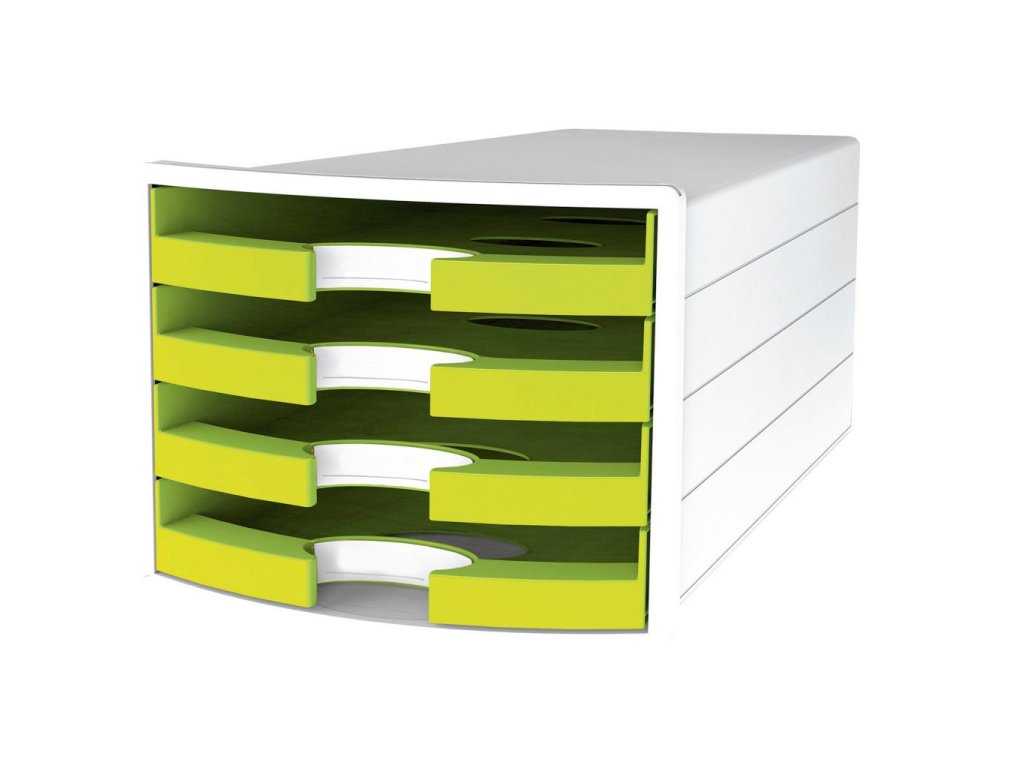 Box so štyrmi otvorenými zásuvkami v tvare počítačového monitora v trendových farbách. Rozmery (š × v × h) 294 × 235 × 368 mm. Farba zelená.Dodatočné parametre