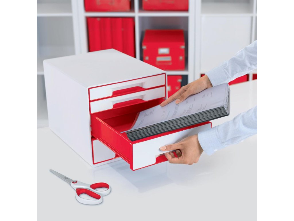 Zásuvkový box Leitz WOW so 4 zásuvkami červený