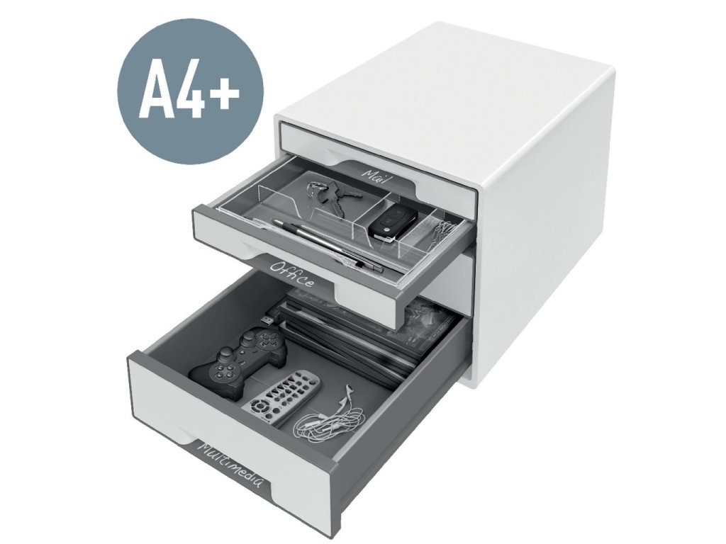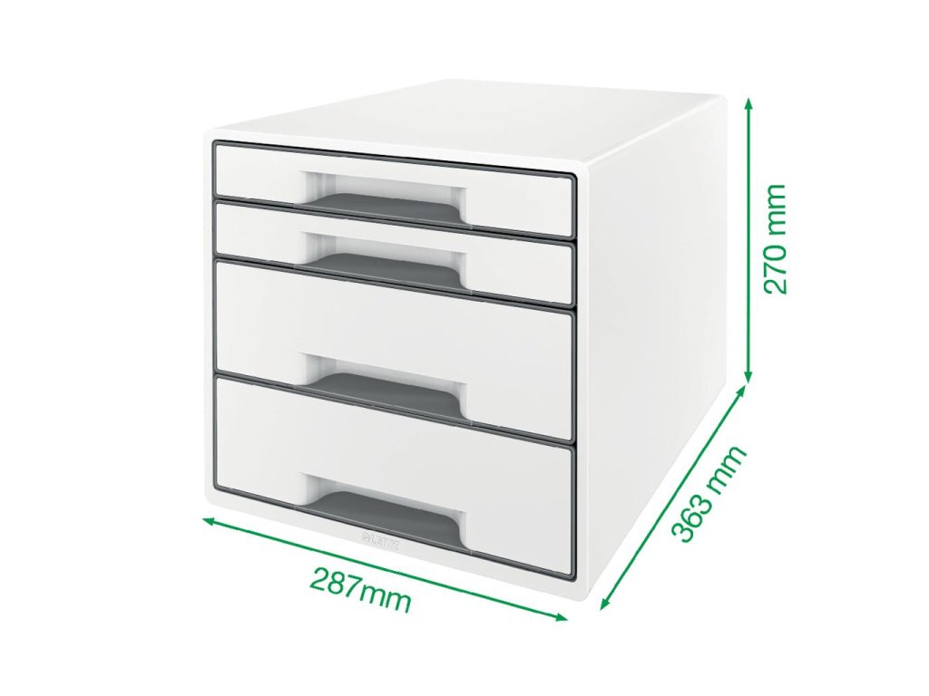 Box, dopĺňajúci produktovú radu Leitz WOW. Ľahko vysúvateľné 2 malé a 2 veľké zásuvky so zarážkou proti úplnému vysunutiu, jednoduché otváranie a zatváranie. Gumové nožičky pre lepšiu stabilitu, rozlišovač na popis zásuvky. Rozmery 287 × 270 × 363 mm. Farba červená.Dodatočné parametre