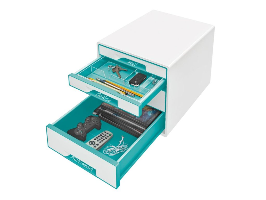 Zásuvkový box Leitz WOW so 4 zásuvkami ľadovo modrý