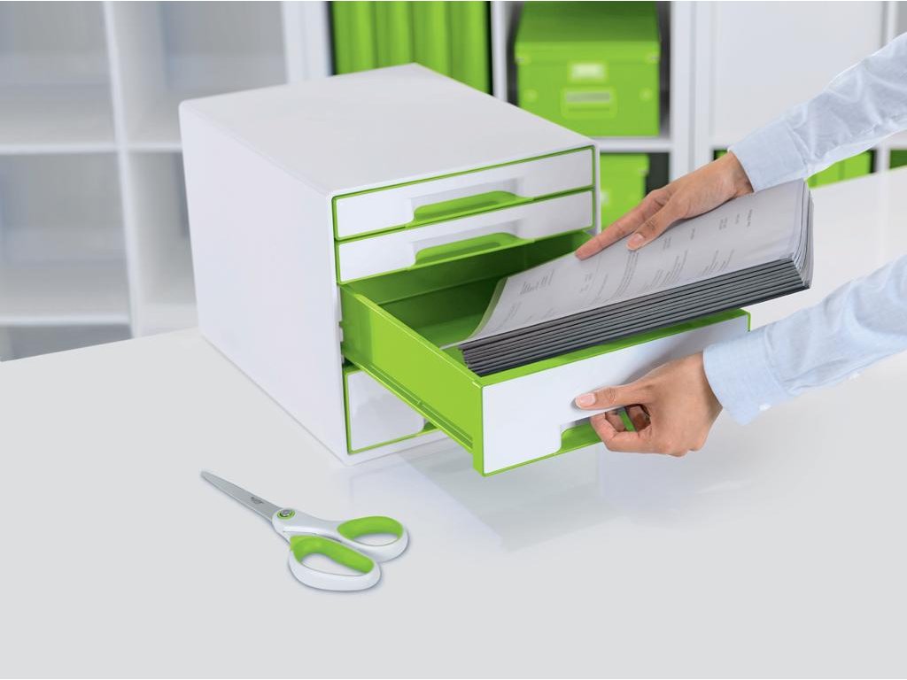 Box, dopĺňajúci produktovú radu Leitz WOW. Ľahko vysúvateľné 2 malé a 2 veľké zásuvky so zarážkou proti úplnému vysunutiu, jednoduché otváranie a zatváranie. Gumové nožičky pre lepšiu stabilitu, rozlišovač na popis zásuvky. Rozmery 287 × 270 × 363 mm. Farba zelená.Dodatočné parametre