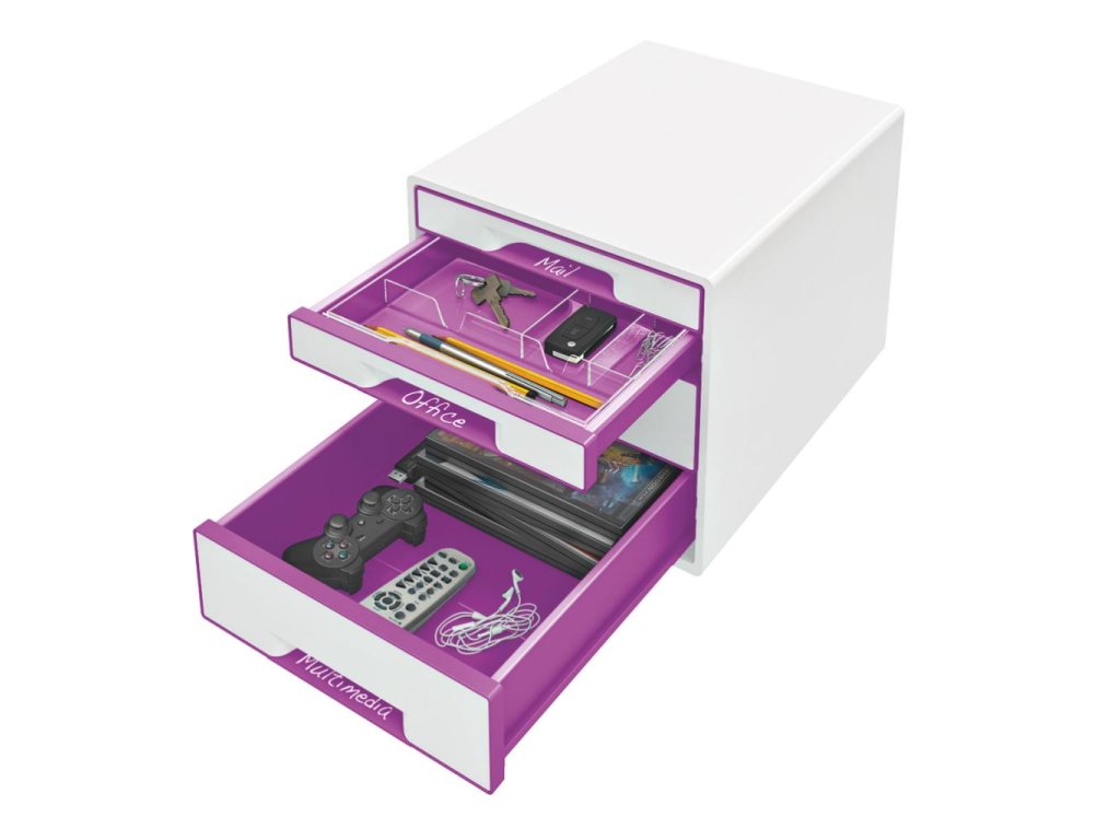 Zásuvkový box Leitz WOW so 4 zásuvkami purpurový