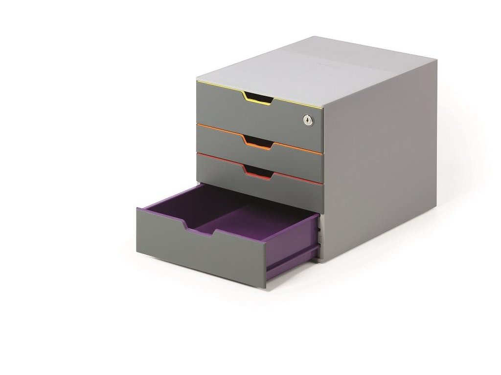 Box s cylindrickou vložkou, dodávaný s 2 kľúčami. 4 zatvorené zásuvky, vrchná a spodná zásuvka vo formáte XXL.Dodatočné parametre