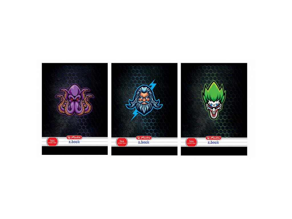 Školské zošity Herlitz 544, A5 alebo 444 A4 v mixe chlapčenských dizajnov roku 2020. 40 listov, úprava linajková 8 mm, 70g/m2, bezdrevný papier.Dodatočné parametre