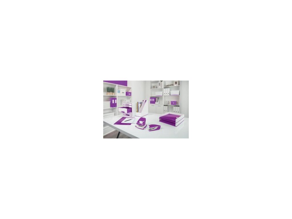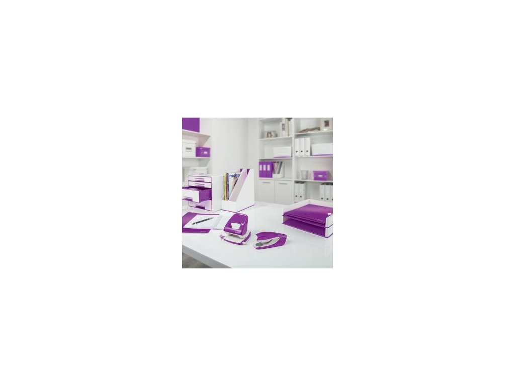 Dodajte svojmu pracovnému miestu alebo domácnosti farbu a skombinujte s ostatnými kancelárskymi výrobkami z radu Leitz WOW. Na spinky Leitz Power Performance P3, 24/6 a 26/6. Vrátane štartovacieho balenia. Praktický integrovaný vyberač spiniek. Farba purpurová.