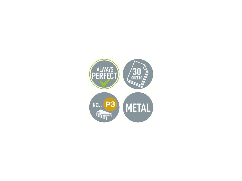 Pevná a spoľahlivá celokovová zošívačka na každodenné použitie. Už žiadny stres so zaseknutým drôtikom vnútri zošívačky vďaka patentovanej technológii DIT. Najlepšie výsledky dosiahnete v kombinácii s drôtikmi Leitz Power Performance P3 (24/6, 26/6). Kapacita zošívania: 30 hárkov (80 g/m2). Farba svetlo zelená.Dodatočné parametre