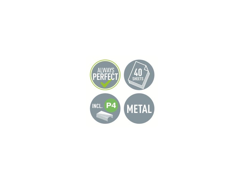 Kvalitná výkonná zošívačka na zošívanie veľkých formátov a zošívanie uprostred dokumentu, napr. brožúr. Patentovaná zošívacia technológia DIT na vždy spoľahlivé zošitie. Najlepšie výsledky dosiahnete v kombinácii s drôtikmi Leitz Power Performance P3 (24/6, 26/6) alebo P4 (24/8, 26/8). Kapacita zošívania: 40 hárkov (80 g/m2). Doraz nastaviteľný na formáty A2 až A6, medzinárodné formáty US-Norma a Foolscap. Hĺbka vkladania až 300 mm. Otočná nákovka na zmenu typu zošívania - otvorené a uzavreté zošívanie, otvorením ramena o 180° je možné aj zošívanie nástenkové. Kapacita zošívania: 40 hárkov (80 g/m2). Farba čierna.Dodatočné parametre