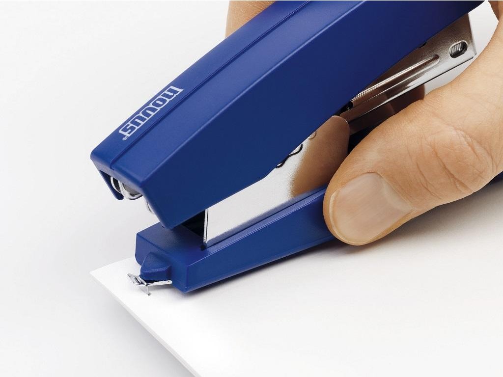 Malá ľahká zošívačka so systémom plochého zošívania (Flat-Clinch), umožňujúca superľahké zošívanie. Plastový zásobník, jednoduché vedenie spiniek. Kapacita náplne 100 spiniek veľkosti 10. Hĺbka zošívania 3,8 cm. Hmotnosť 115 g. Záruka 10 rokov.Farba: modrá