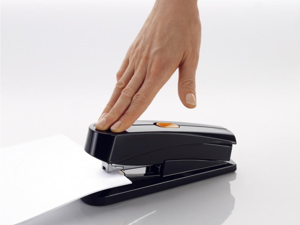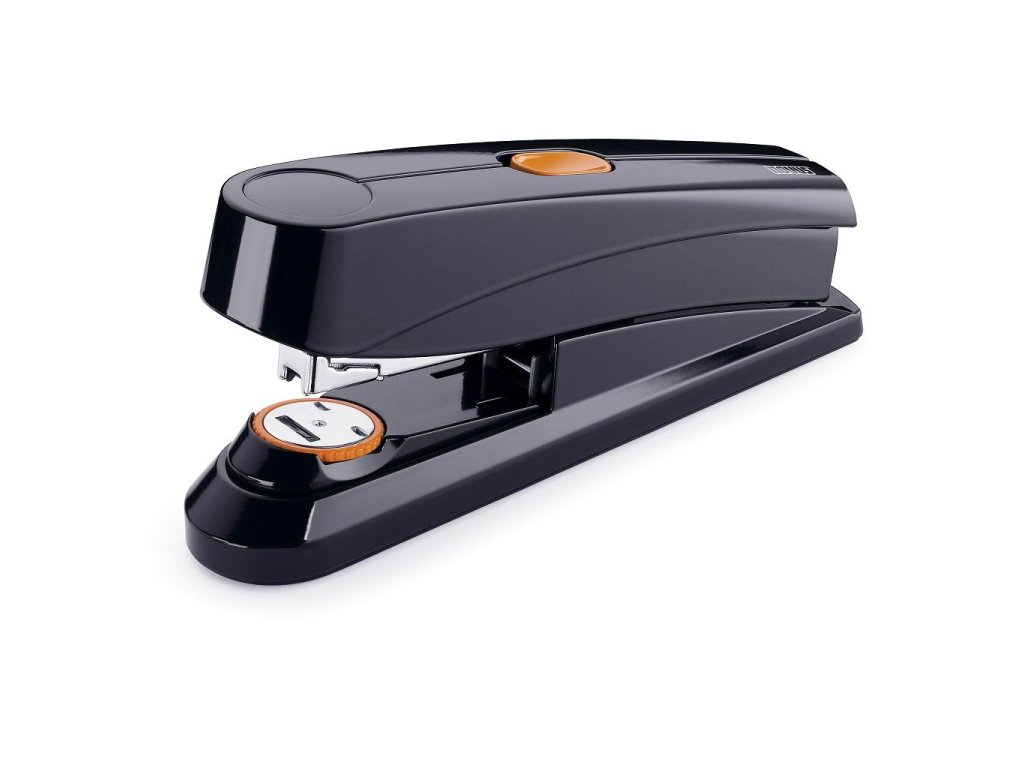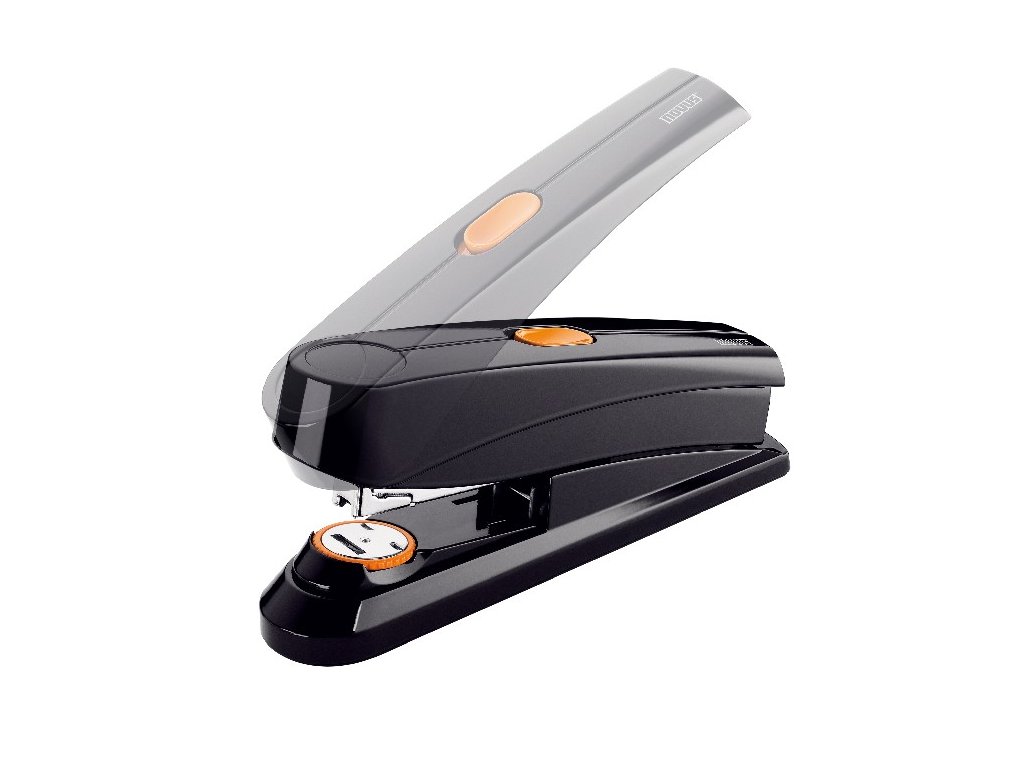 Stolová zošívačka z kolekcie Harmony s vlastnosťou plochého zošívania. Zošívanie so zníženým úsilím, ktoré vyžaduje o 70% menšiu silu ako u bežnej zošívačky pri danej kapacite súčasne zošívaných listov. Výmena spiniek pri striedavom zošívaní veľkého a malého počtu listov nie je nutná-systém ,,bypass` umožní použitie iba jednej veľkosti spiniek tým, že spinku ohne do bokov. Vrchný diel z plastu, kovový zásobník s dvojitým vedením spiniek. Kapacita náplne 150 spiniek 24/8 alebo 200 spiniek 26/8. Hĺbka zošívania 6,5 cm. Hmotnosť 680 g. Záruka 25 rokov.Farba: čierna