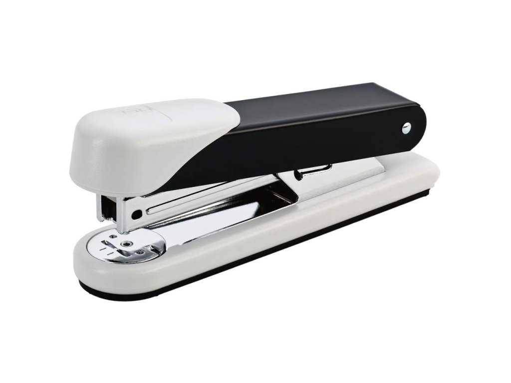 Cenovo výhodná celokovová kancelárska zošívačka v klasickom dizajne. Kapacita náplne 100 spiniek 24/6 alebo 150 spiniek 26/6. Hĺbka zošívania 6,5 cm. Hmotnosť 200 g. Záruka 5 rokov.Farba: čierna/sivá