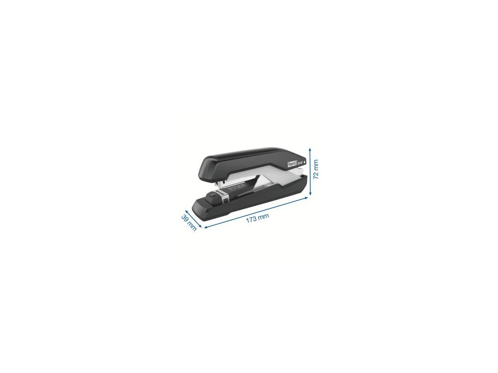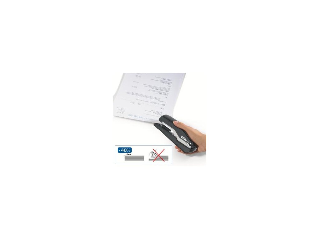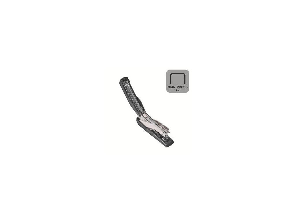 Revolučná zošívačka kompaktných rozmerov a s klasickou kapacitou zásobníka, vybavená patentovanou technológiou Omnipress®, ktorá umožňuje s minimom sily stlačiť zošívačku po celom jej tele a ľahko tak zošiť dokument na stole i v ruke. To všetko v kombinácii s technológiou super plochého zošívania SuperFlatClinch prinášajúcou 40 % úsporu miesta pri zakladaní takto zošitých dokumentov. Farba čierna/sivá.Dodatočné parametre