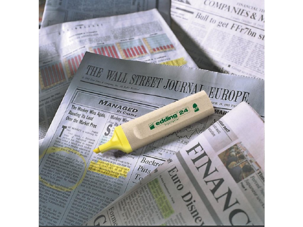Minimálne 90% tela a uzáveru zvýrazňovača vyrobené z obnoviteľných zdrojov. Zvýrazňovač so zrezaným hrotom so šírkou stopy 2 - 5 mm. Pre zvýraznenie textových pasáží, poznámok a pod. Atrament na vodnej báze s intenzívnymi farbami. Dopĺňateľný atramentom HTK 25. Balenie 10 ks.Farba: žltá
